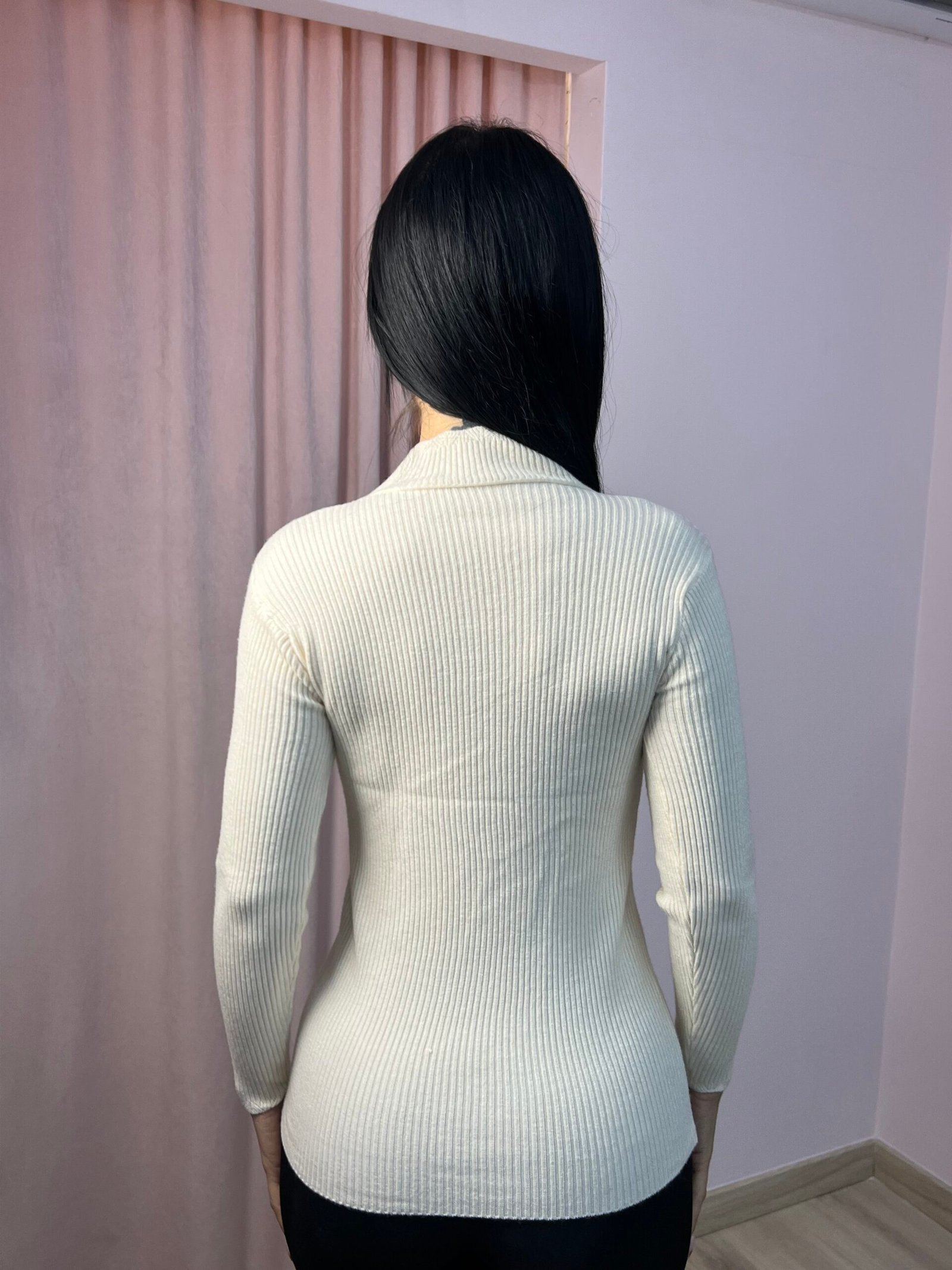 Εφαρμοστή πλεκτή μπλούζα με μακρύ μανίκι και ιδιαίτερη λεπτομέρεια στο ντεκολτέ με τρουκς. Μοντέρνο σχέδιο που συνδυάζει άνεση με κομψότητα, ιδανικό για casual αλλά και πιο βραδινές εμφανίσεις.
