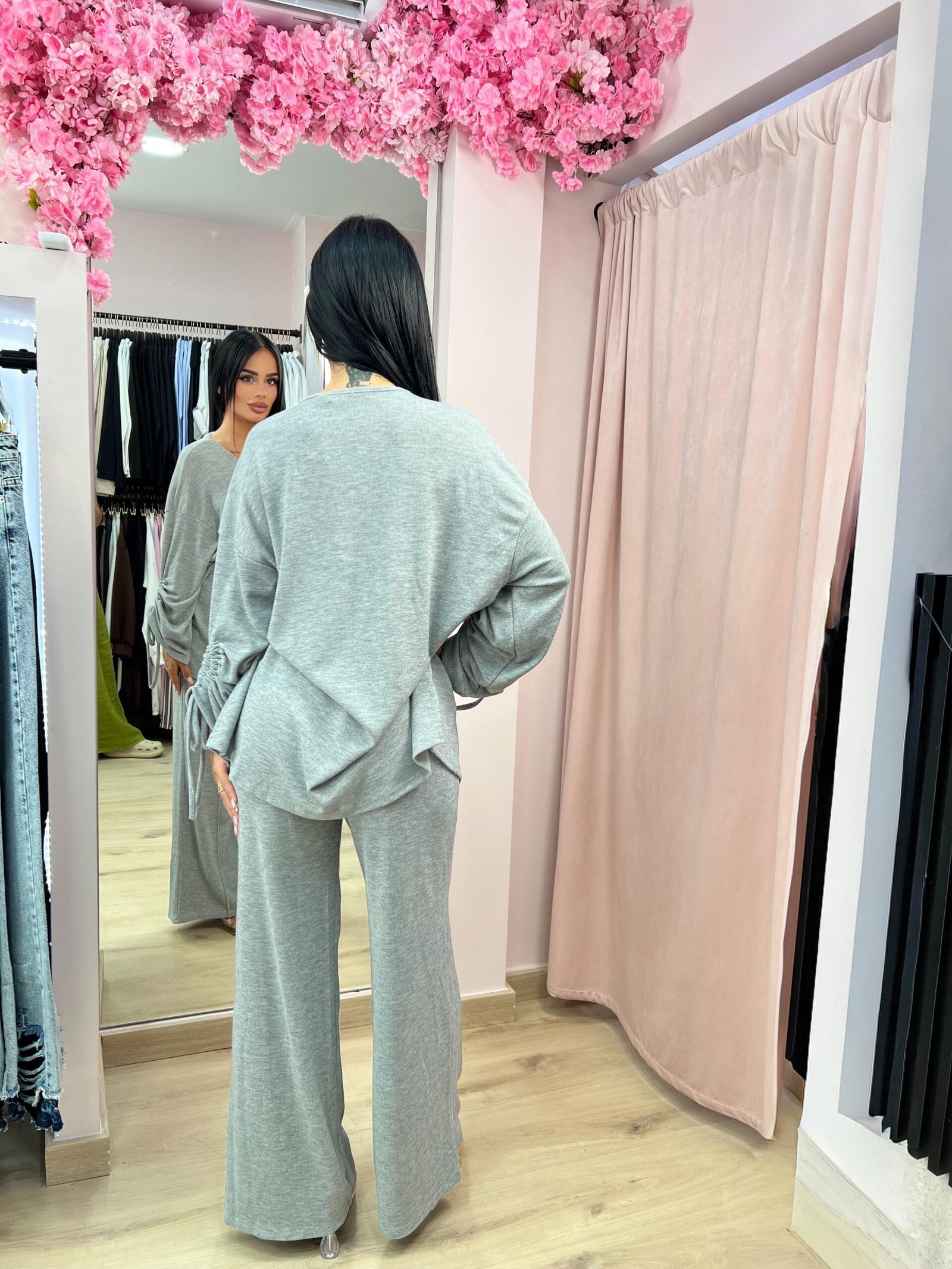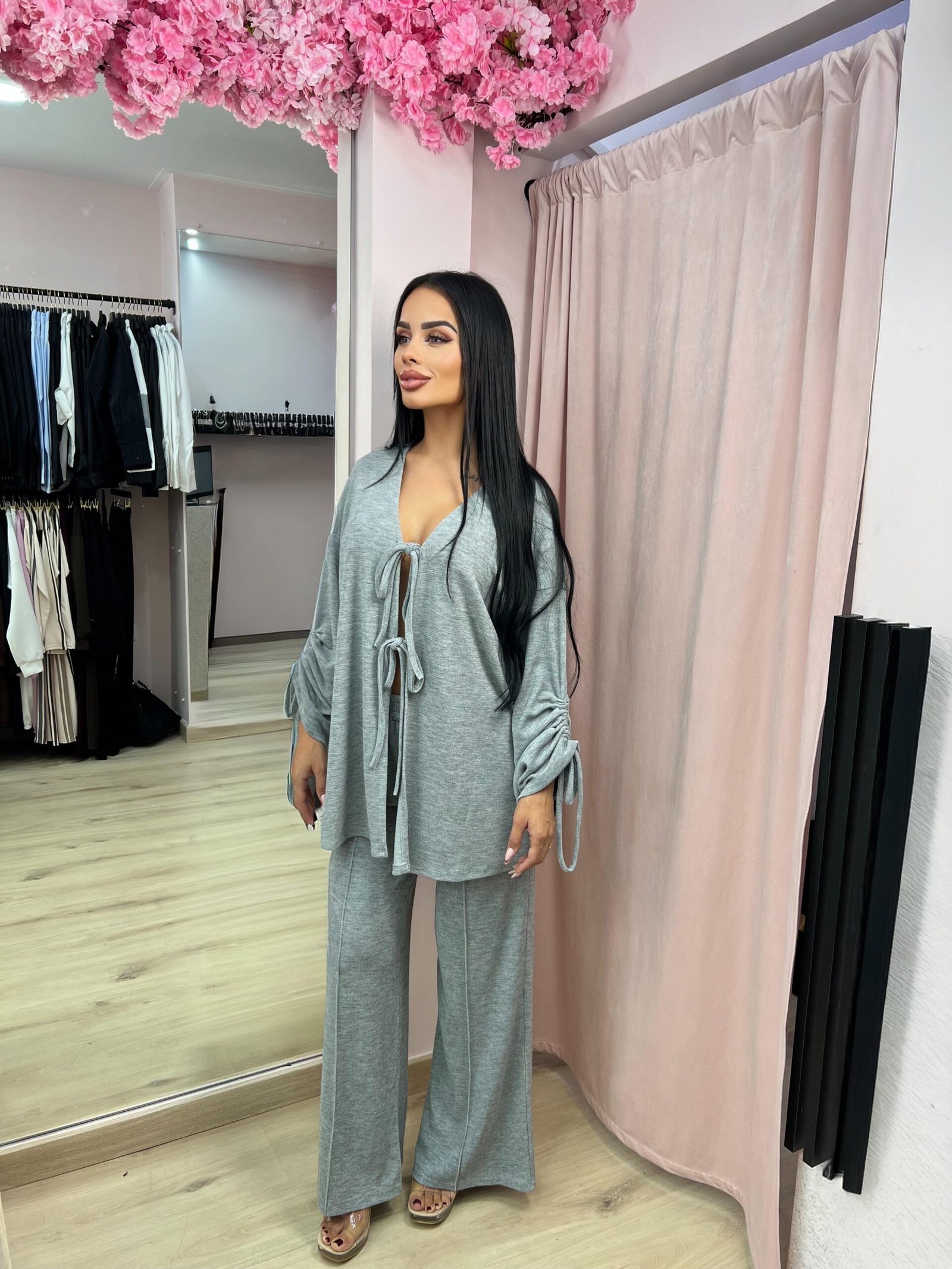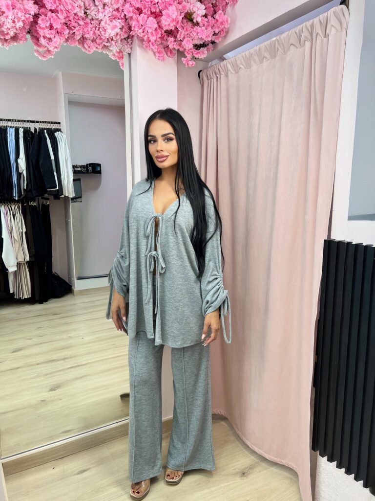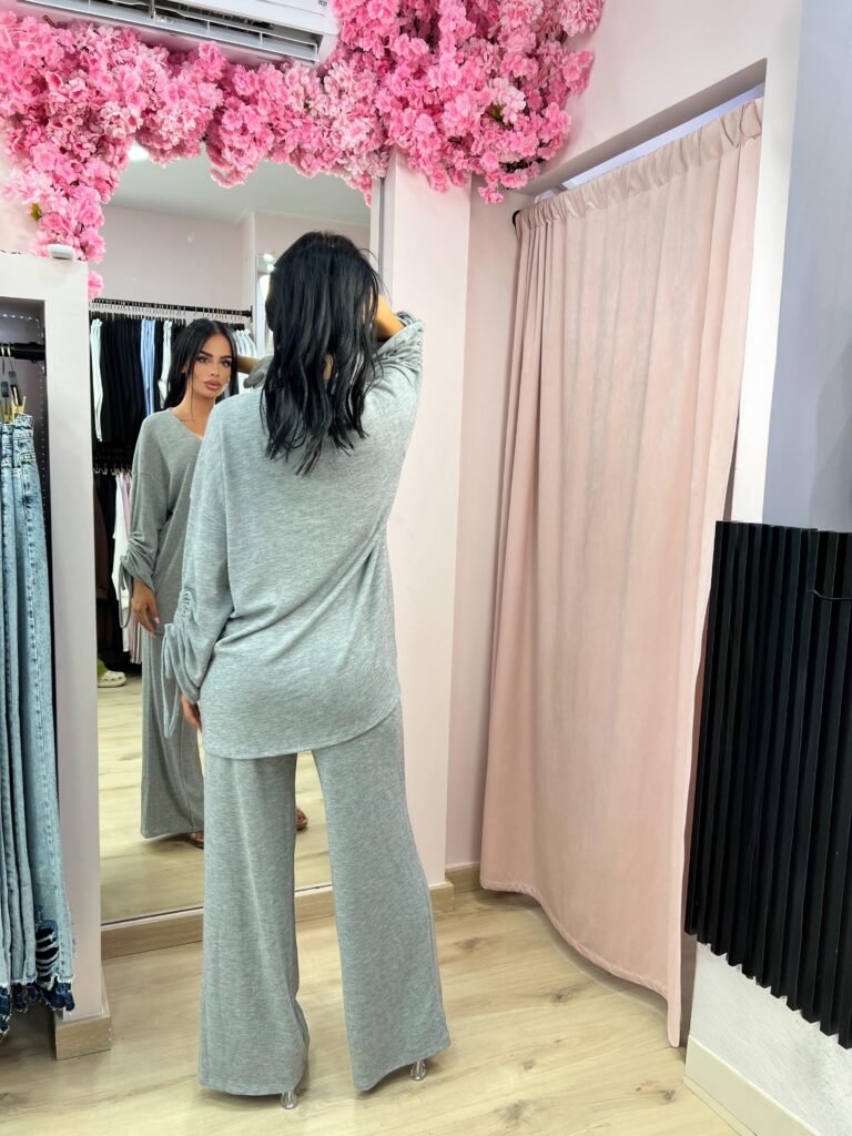 Ανανεώστε το στυλ σας με αυτό το κομψό σετ δύο τεμαχίων από απαλό ύφασμα. Το τοπ διαθέτει ριχτή γραμμή με V λαιμόκοψη και δέσιμο στα μανίκια για extra στυλ, ενώ η παντελόνα με φαρδιά γραμμή χαρίζει άνεση και ελευθερία κινήσεων. Ιδανικό για casual αλλά και πιο προσεγμένες εμφανίσεις, από το πρωί μέχρι το βράδυ.