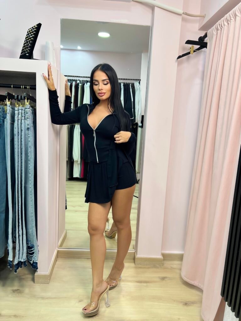 Ένα μοντέρνο και πρακτικό σετ που συνδυάζει άνεση και στιλ. Η εφαρμοστή μπλούζα με μακρύ μανίκι διαθέτει φερμουάρ μπροστά, προσφέροντας δυνατότητα προσαρμογής στο ντεκολτέ. Η φούστα-σορτς ολοκληρώνει το look, χαρίζοντας θηλυκότητα χωρίς να στερεί την ευκολία της κίνησης. Ένα σετ ιδανικό για καθημερινές αλλά και πιο ιδιαίτερες εμφανίσεις.