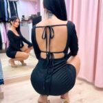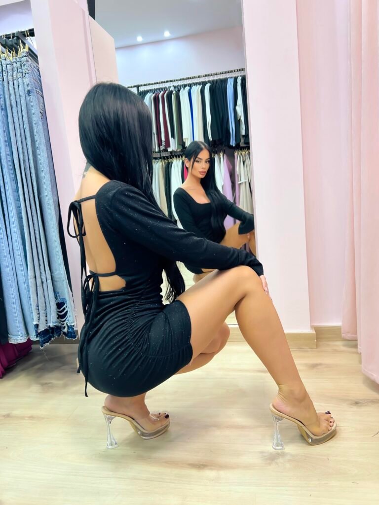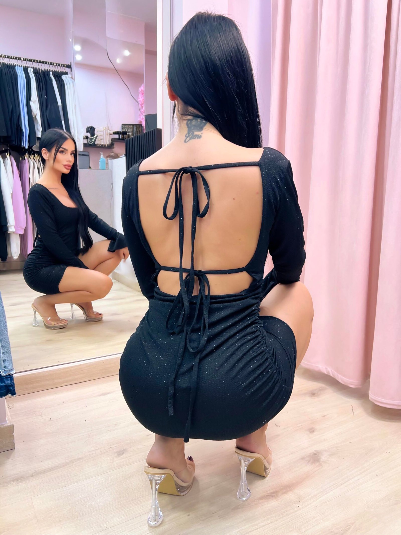 Η πλάτη με ανοίγματα και δέσιμο με κορδόνια δημιουργεί ένα τολμηρό και σαγηνευτικό αποτέλεσμα, ενώ το ντραπέ σχέδιο στο κάτω μέρος προσφέρει άνεση και στυλ. Ιδανικό για βραδινές εμφανίσεις, πάρτι ή ιδιαίτερες περιστάσεις που απαιτούν κομψότητα με έντονη προσωπικότητα.